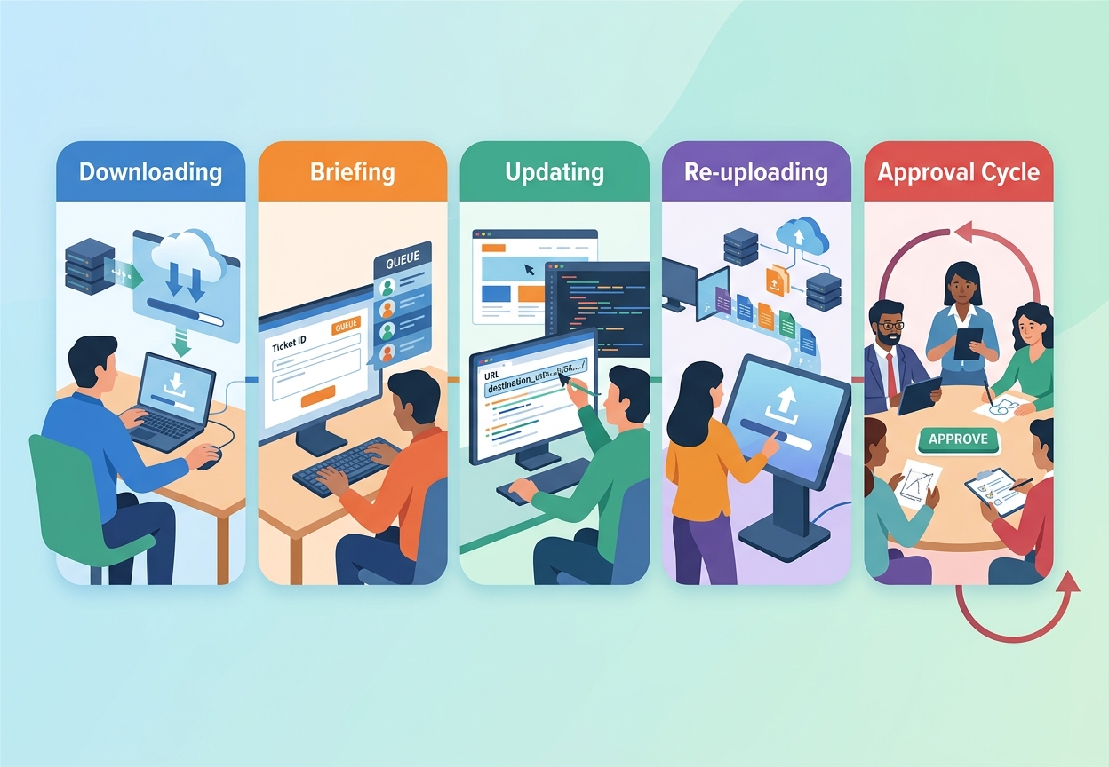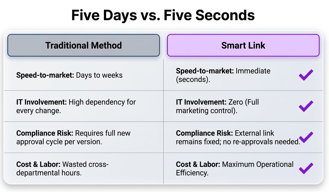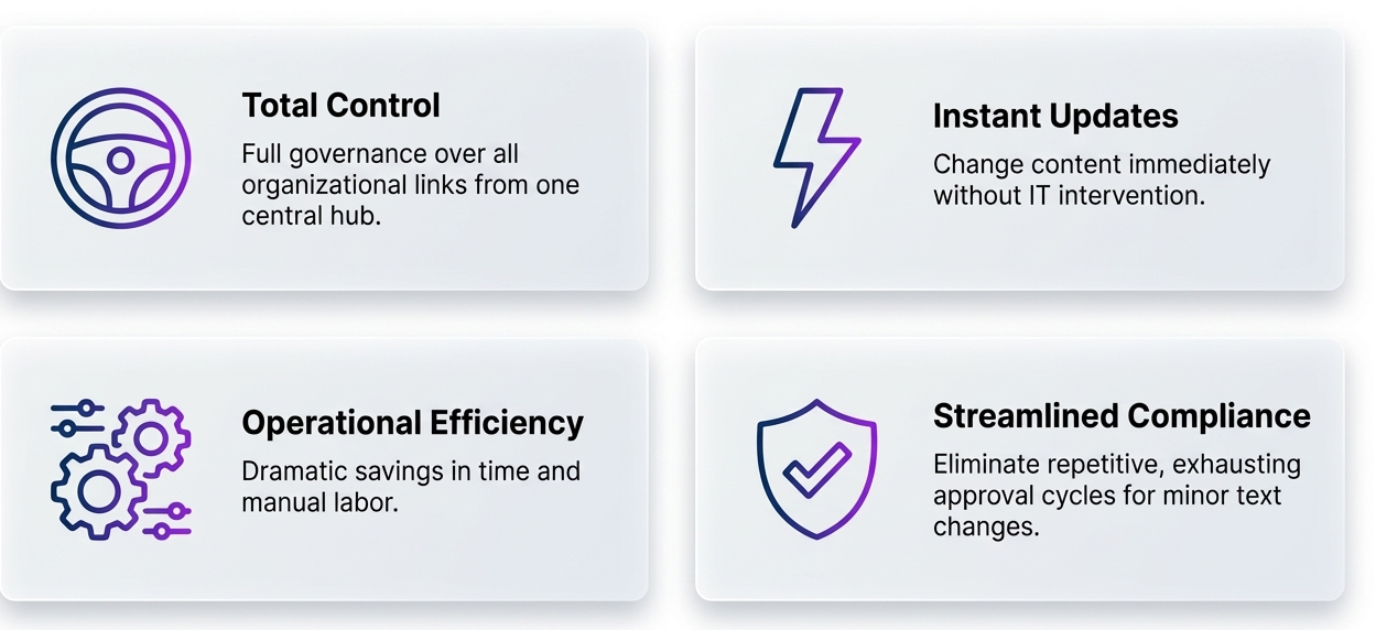 In today's fast-paced organizations, updating even a single small link can paralyze an entire project. Changing a destination URL—whether embedded in a PDF, a brochure, or an email Call-to-Action (CTA)—often triggers a frustrating and delayed organizational chain reaction. The traditional process is a logistical nightmare: